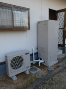 玉野市東紅陽台にお住まいのY・K様邸でエコキュート工事をさせていただきました。